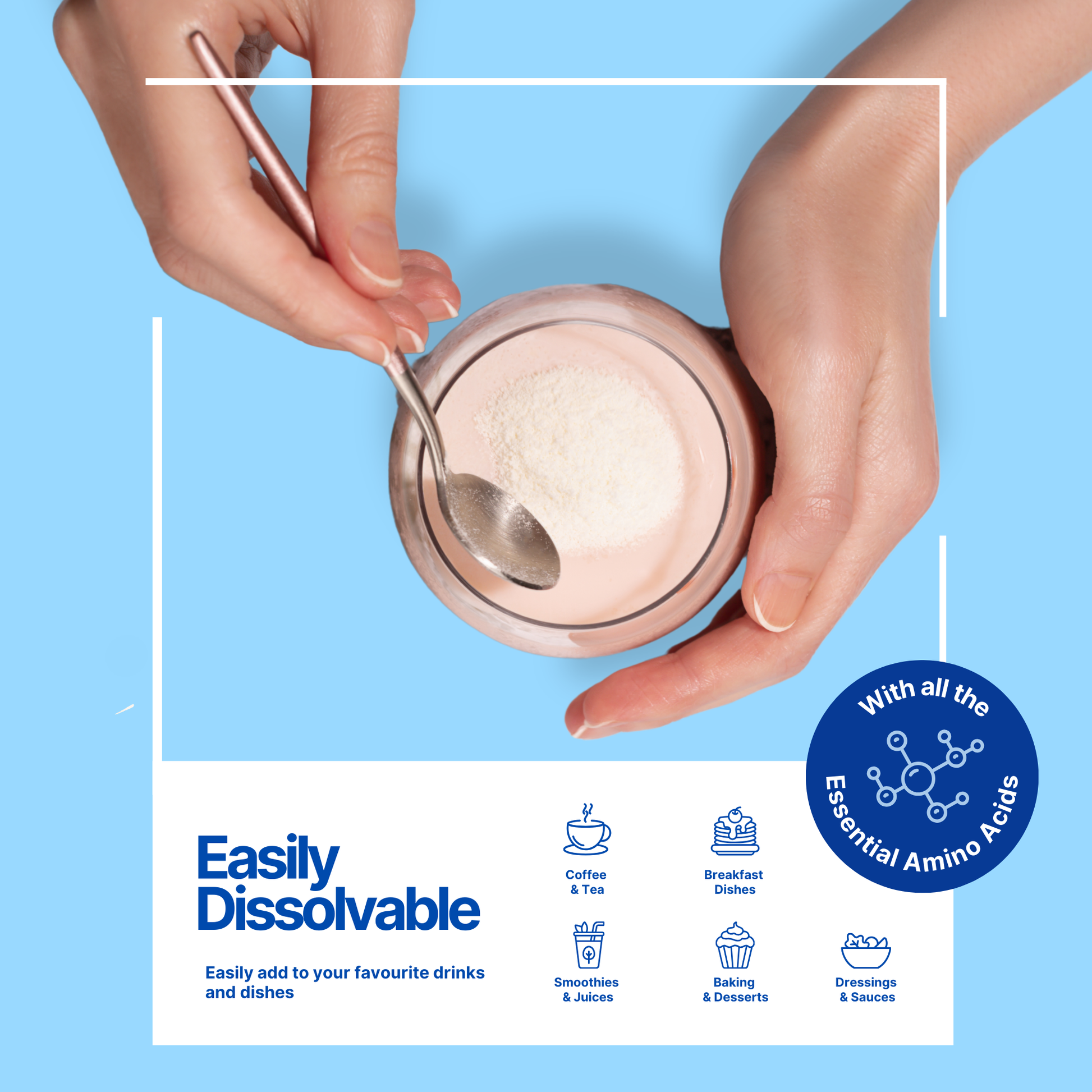 Add 1 scoop (10gm) of Hydrolysed Collagen Powder into your favourite beverage or meal 1-2 times a day or as advised by your GP.